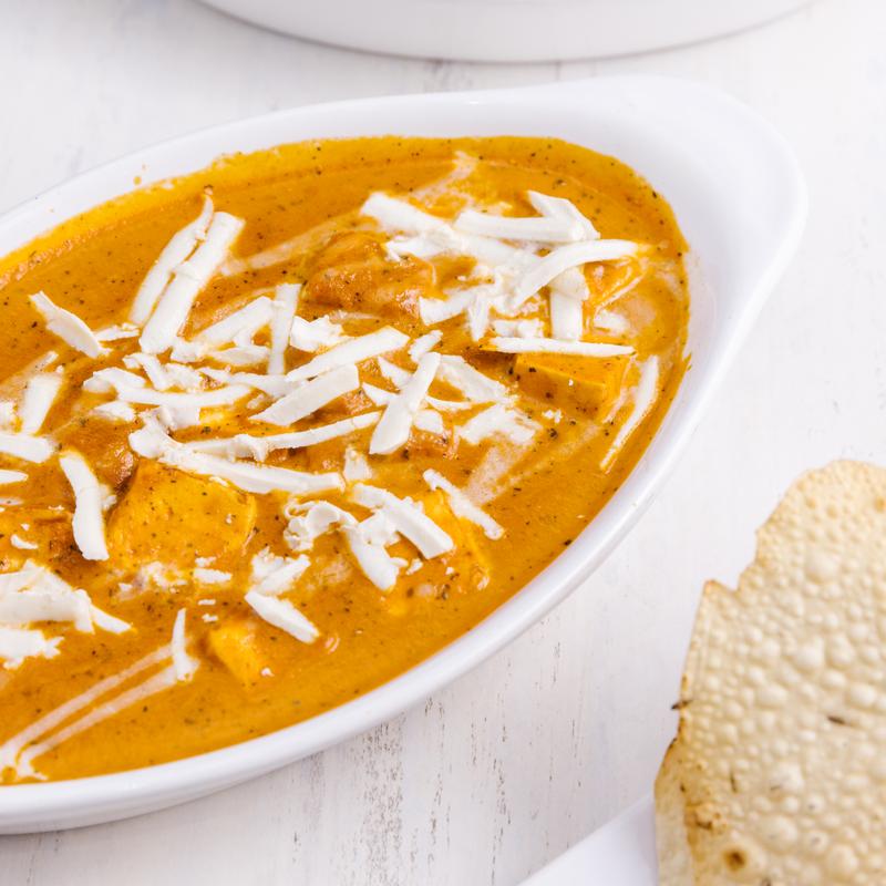 Fried paneer slices served in a smooth onion and tomato gravy.