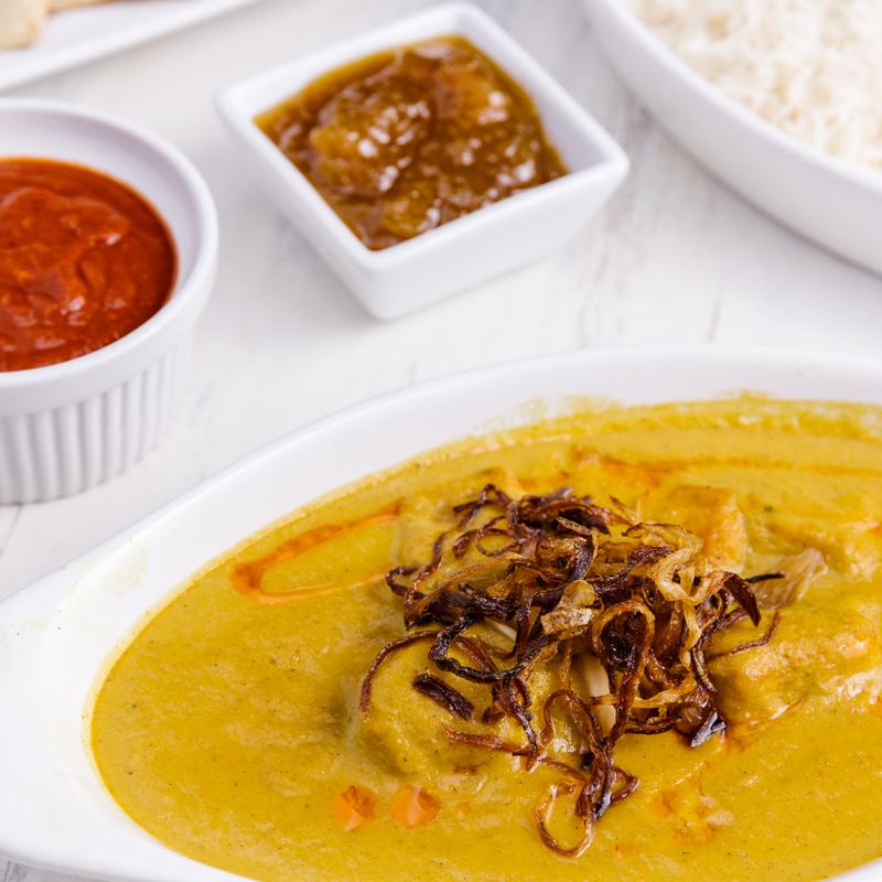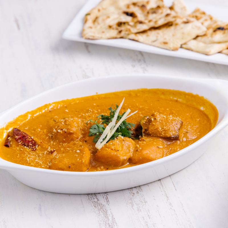 Tender lamb pieces slow cooked in a rich, smooth saffron and cashew sauce with a blend of aromatic spices. This dish is mildly spiced and full of flavor, offering a luxurious and comforting dining experience. (Contain Nuts). GF.