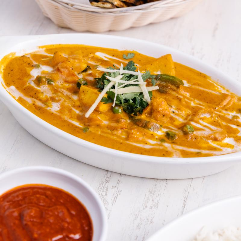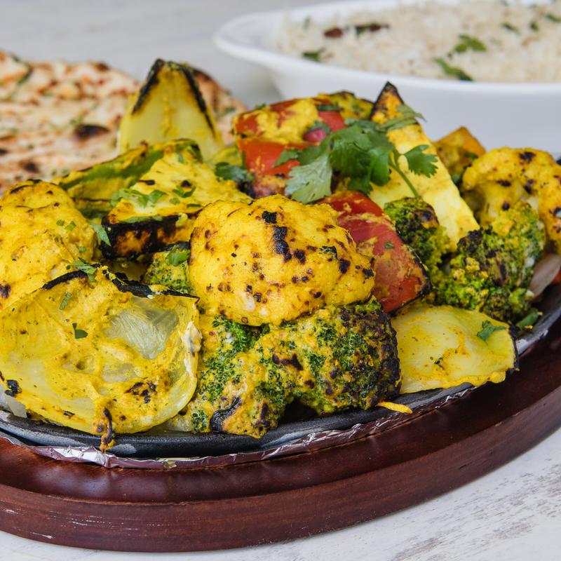 A delightful assortment of yogurt-marinated vegetables and paneer, infused with traditional Indian spices and cooked in a clay oven. This dish offers a perfect balance of smoky flavors and tender textures. GF, NF.