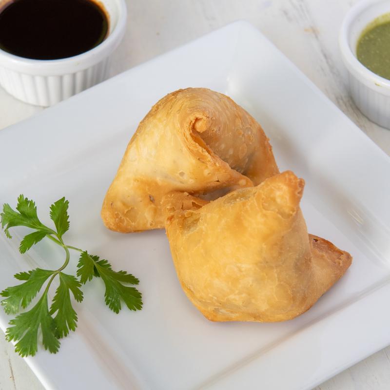 Crispy fried Indian Pastry with a savory mix of spiced potatoes, peas and aromatic herbs. Served with tangy tamarind and refreshing mint chutneys. DF. V.