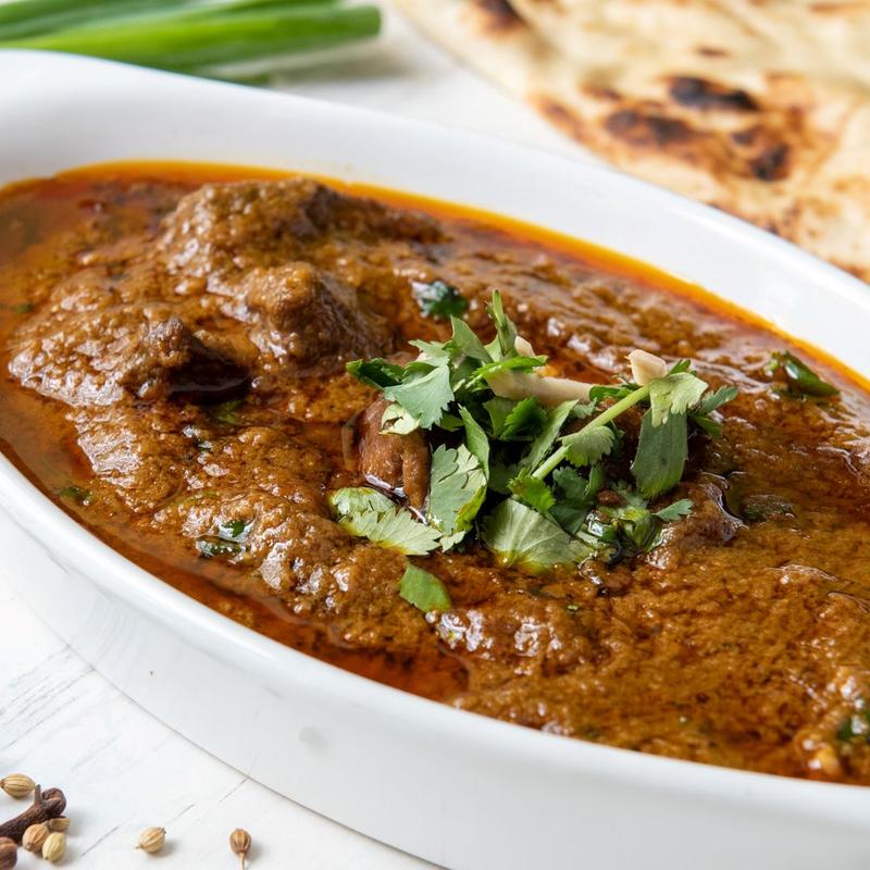 Curried lamb cooked in ginger, onion and garlic sauce.