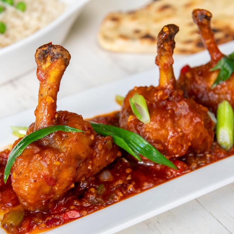 Chicken Wings fried and tossed in sweet spicy ginger garlic sauce. Served with peppers - Chicken lollipop, Chili Paneer and Gobi Manchurian have the same sauce.