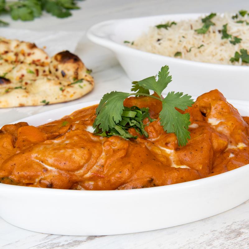 Chicken cooked in spiced tomatoes, onion, butter and cream sauce.